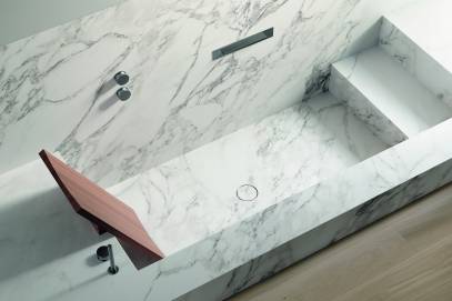 ELEMENTS_ è un grande abaco di prodotti da rivestire che si qualificano sia per l’alta configurabilità progettuale e coerenza formale sia per le notevoli prestazioni del tecnopolimero di PVC con cui sono realizzati. Il programma comprende vasche, piatti doccia, piani lavabo, muri tecnici, gradini, pedane, sedute, contenitori e mobili proposti in diverse varianti geometriche e dimensionali e si caratterizza per leggerezza, adattabilità in opera e facilità d